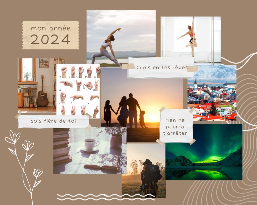 Petit point sur ce que c’est… C’est un outil visuel (montage, collage…) qui aide à représenter graphiquement vos objectifs, vos aspirations, vos rêves. Il est généralement créé en rassemblant des images, des mots et des citations qui reflètent ce que vous souhaitez accomplir ou manifester dans votre vie.
